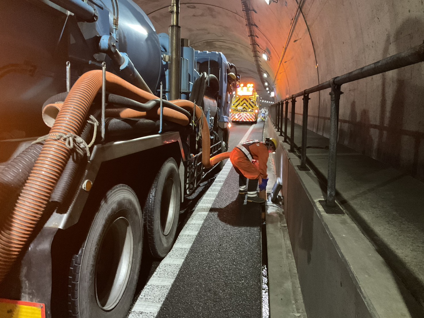 弊社では、下水管渠(かんきょ)の清掃を専門に、安全かつ効率的に作業を行っています。専用の高圧洗浄車や吸引車を駆使し、管内の汚泥や堆積物を確実に除去。